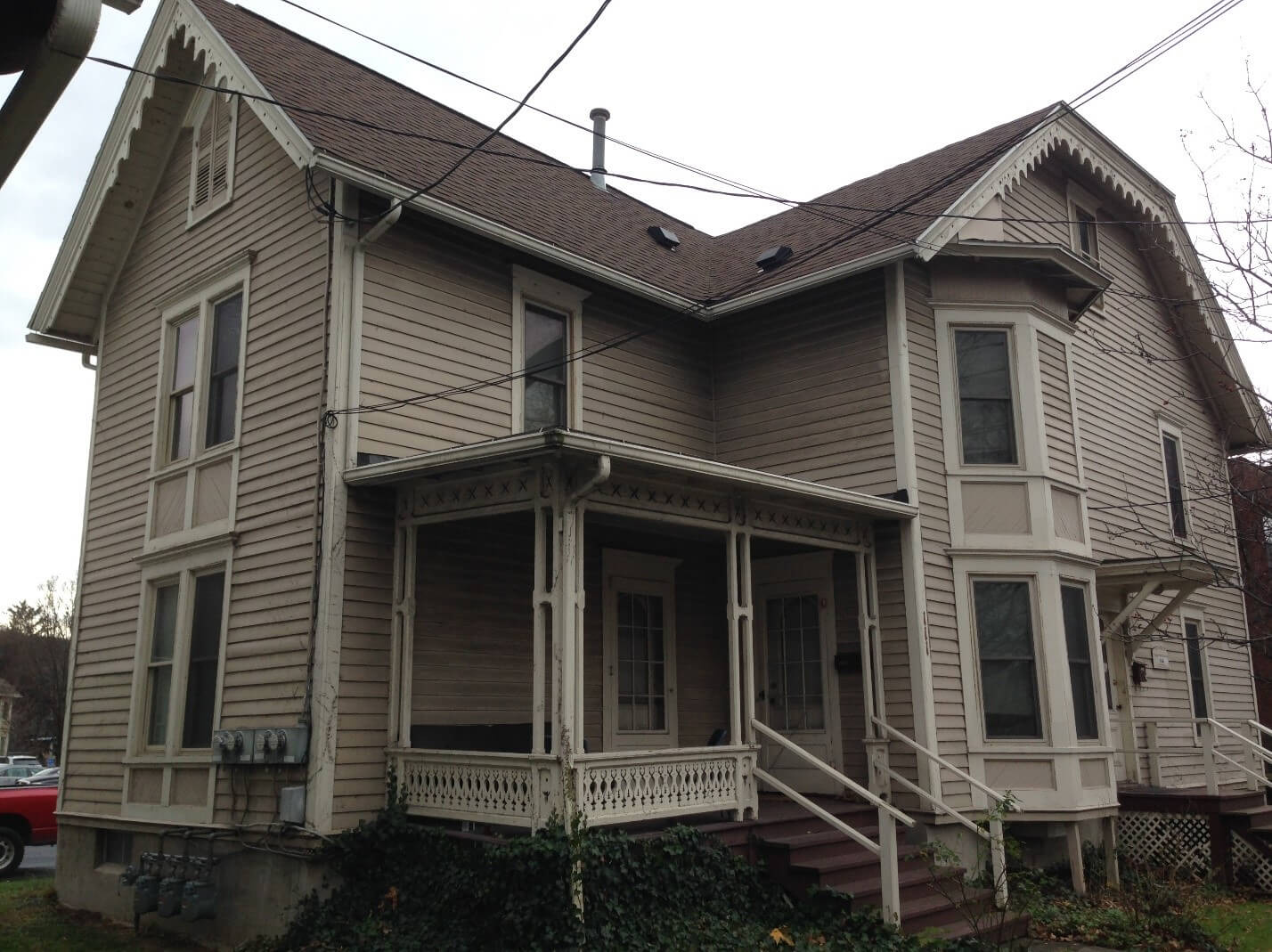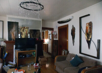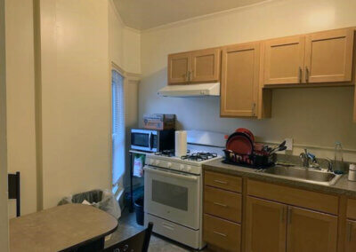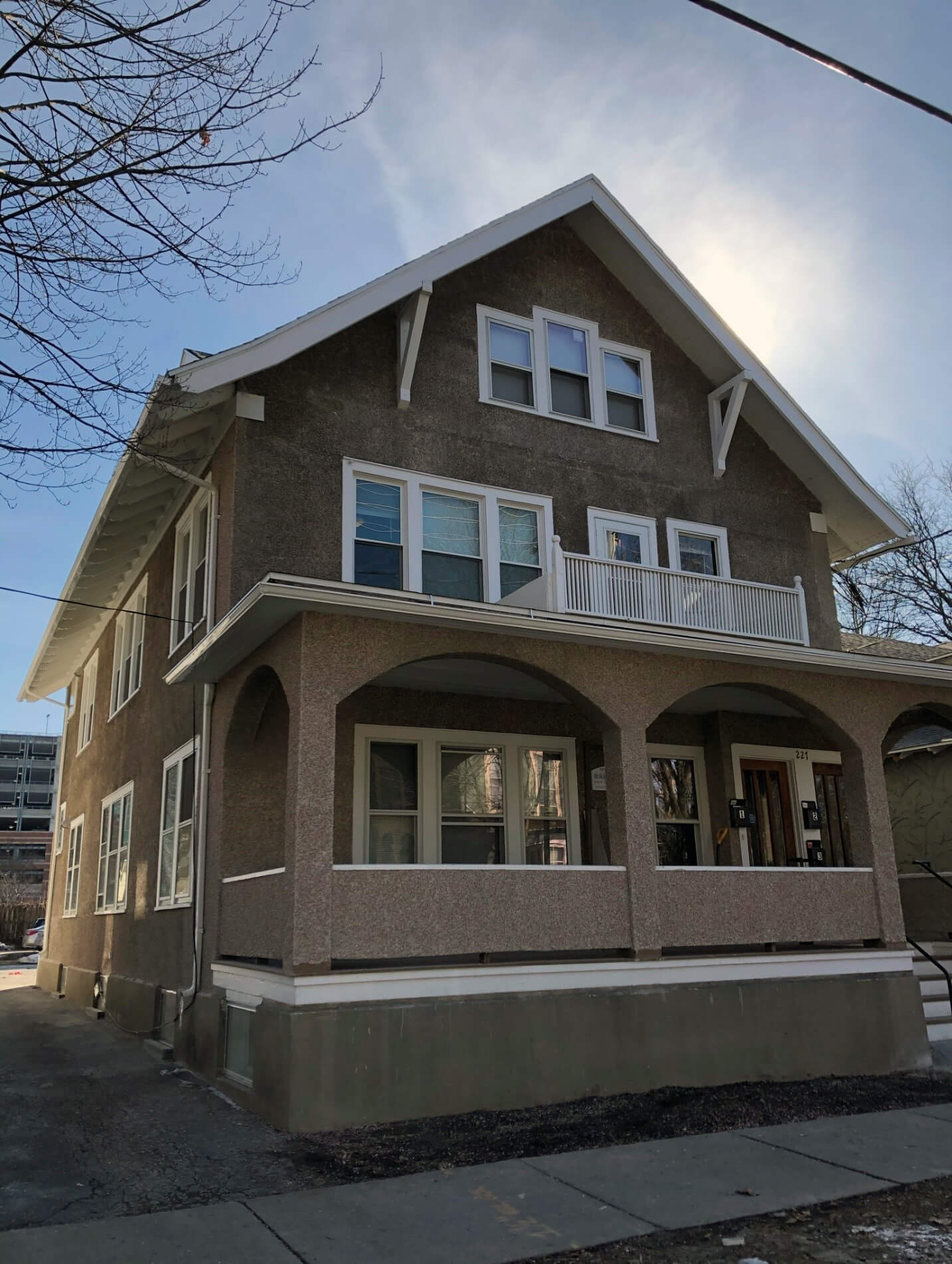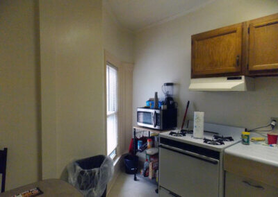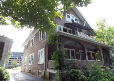 Work performed on both buildings include: exterior woodwork repaired, bathrooms and kitchens replaced, new cabinets, countertops, water-saving fixtures, and energy efficient appliances installed, original wood floors refinished, and light fixtures replaced with original light fixtures retained and rewired. At 227 S Geneva, portions of the original stucco was replaced, new roof installed, non-original windows replaced or original windows retained, while 111 W Clinton received a new high-efficiency furnace and new air-source heat pumps.