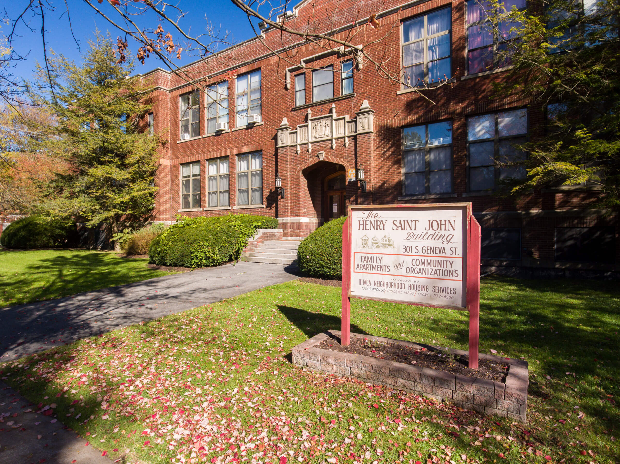 This historic school building was purchased by INHS and renovated into a mixed-use amenity for the community. Boasting twelve apartment units, a gymnasium that's available for public use, and office space rented to primarily local nonprofits, it remains a centerpiece of the Ithaca Southside community.