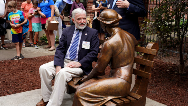 The artist, world-renowned sculptor Meredith Bergmann, depicts the women’s determination, with Frances Perkins holding a list highlighting the programs she took to President Roosevelt, while Lucy Brown is with her pencil and pad on which she wrote reminders to herself of things that needed to be done. Through participation in the global Talking Statues network, a QR code at each site links to an audio narration sharing the women’s stories and highlighting their historic achievements.