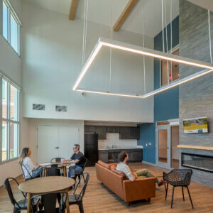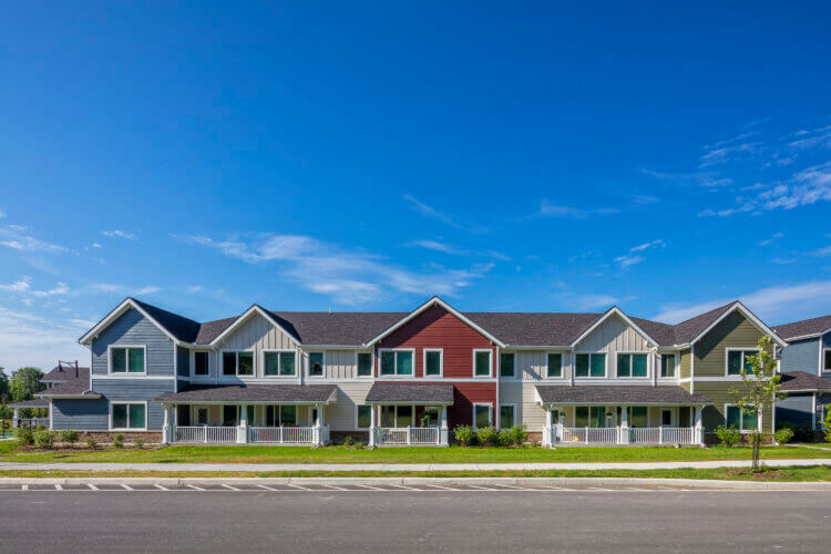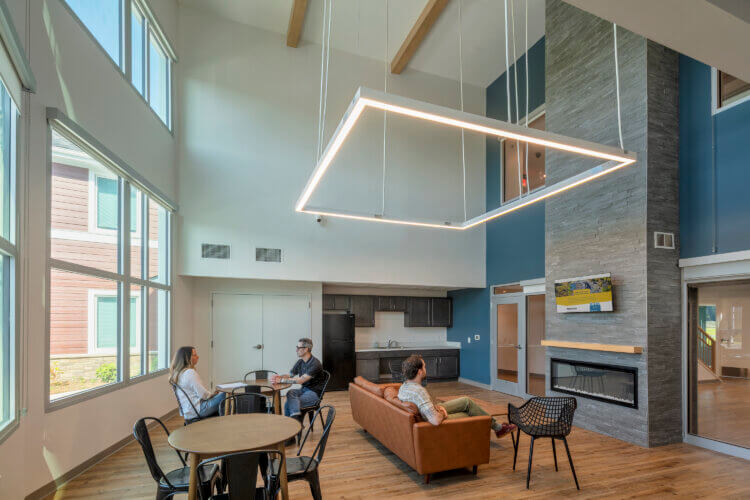 Village Grove features 40 thoughtfully designed one-, two-, and three-bedroom apartments within its rental building, along with six spacious three-bedroom townhomes, all available to households earning between 50% and 90% of the area median income.